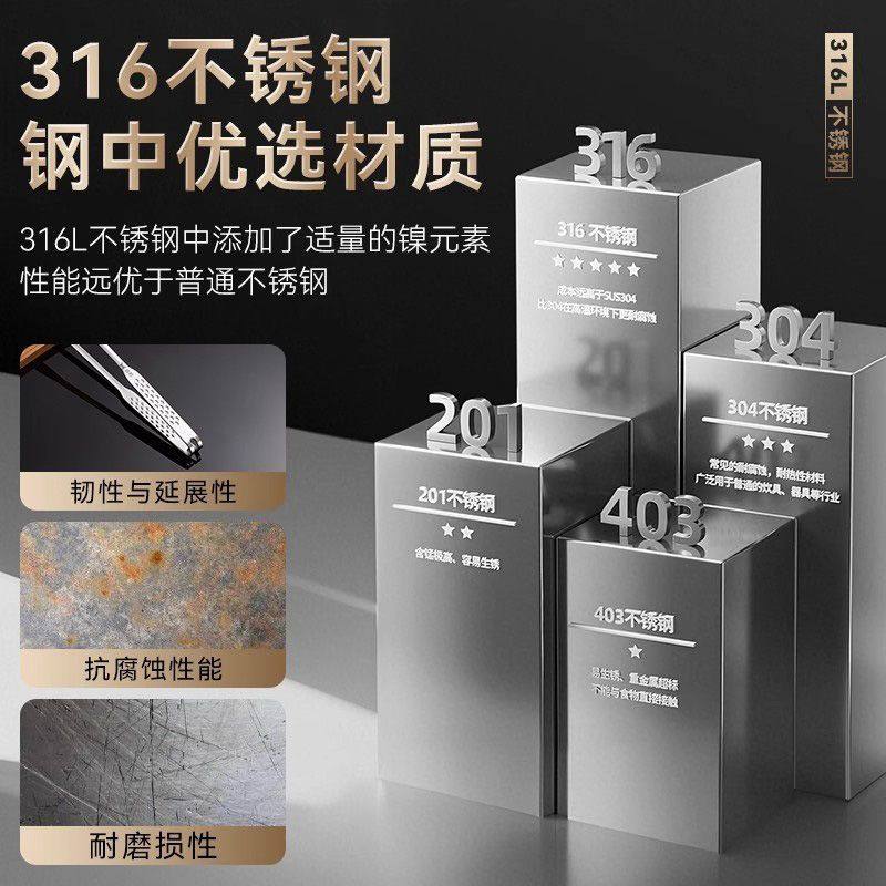 荣事达316L不锈钢韩式烤肉夹子厨房食品级食物牛排夹烧烤烤肉工具
