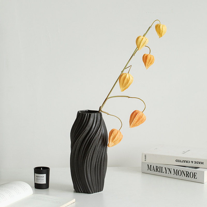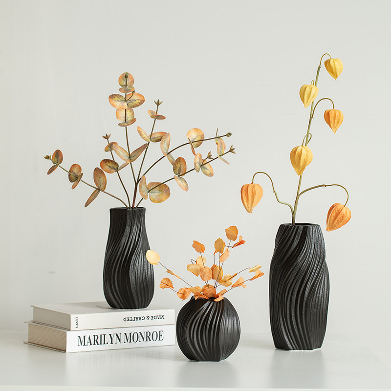 简约现代中古小众玻璃花瓶黑色水养鲜花客厅创意高级装饰插花摆件