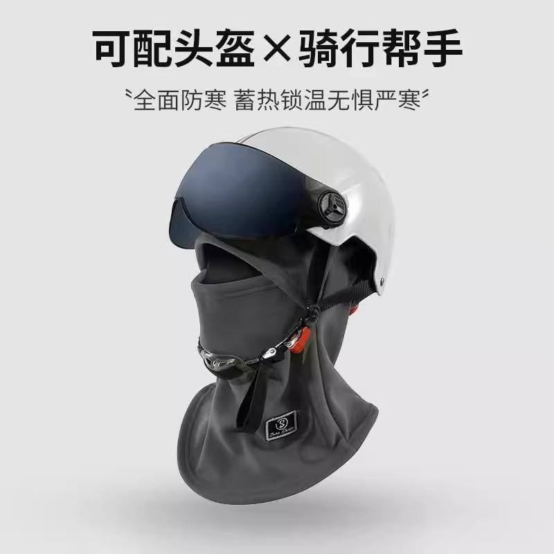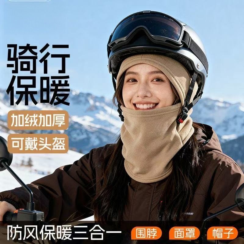 骑行保暖帽子冬季防风面罩摇粒绒一体脖套头套加绒防寒护颈护脸