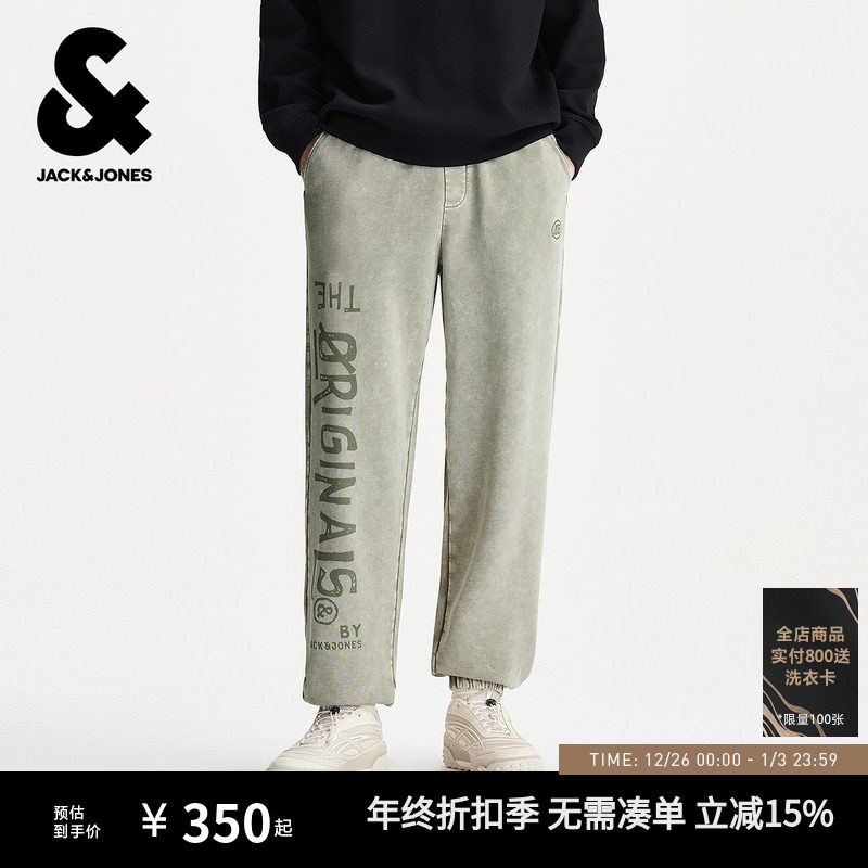 杰克琼斯男装秋季新款纯棉时尚字母印花做旧水洗束脚裤宽松长裤子