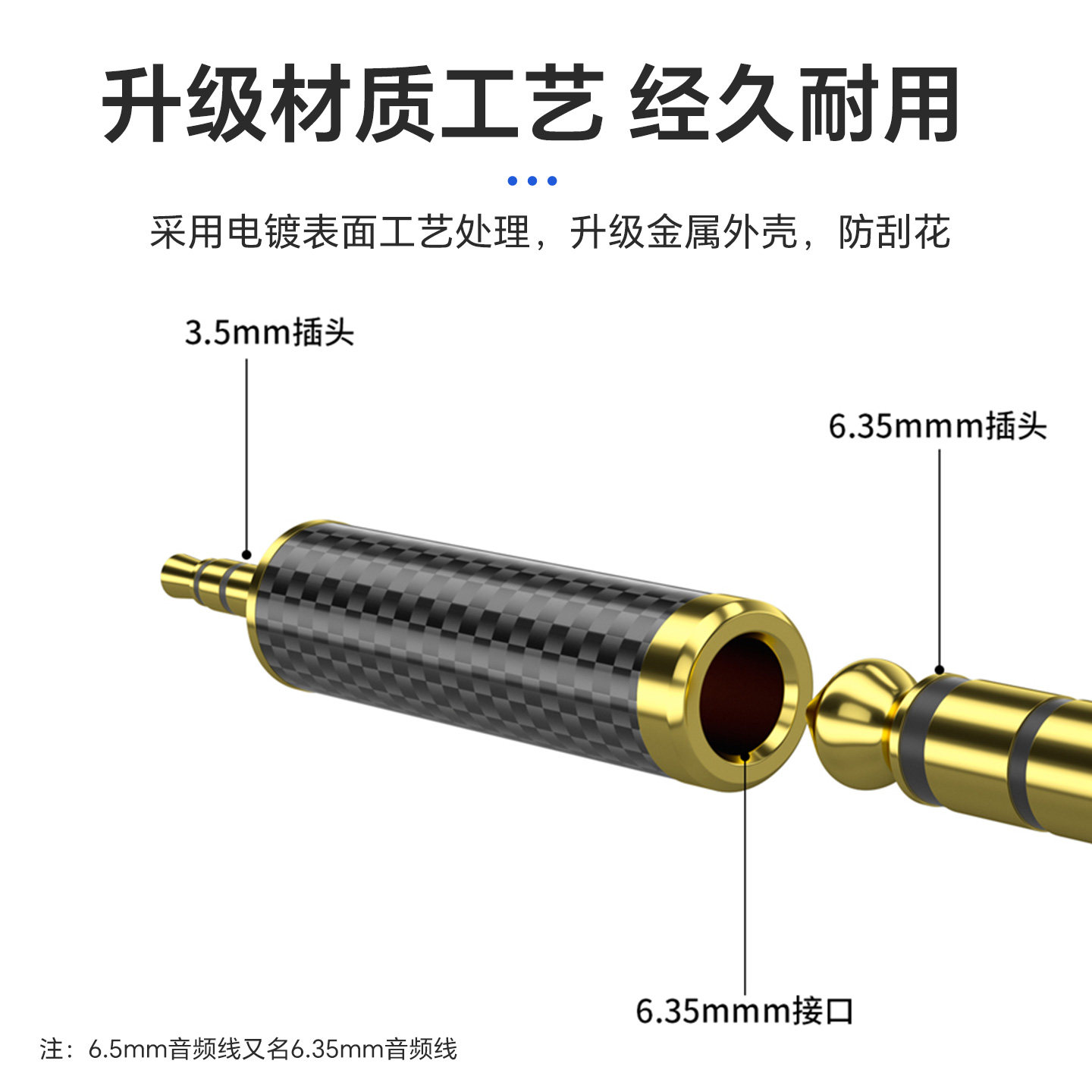 匠视6.5转3.5音频线转接头电吉他耳机麦克风钢琴声卡6.35mm转换器