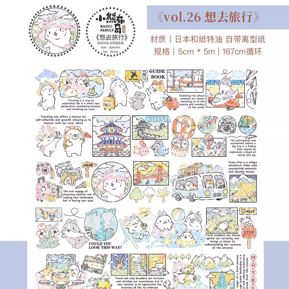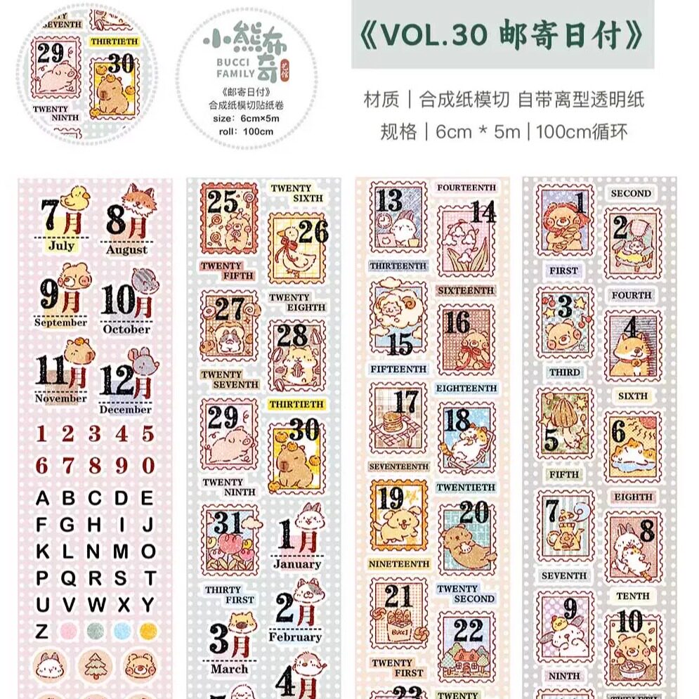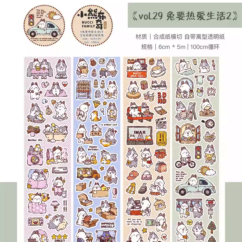 小熊布奇艺馆【分装合集】可爱兔子猫猫盐系治愈手帐和纸胶带贴纸