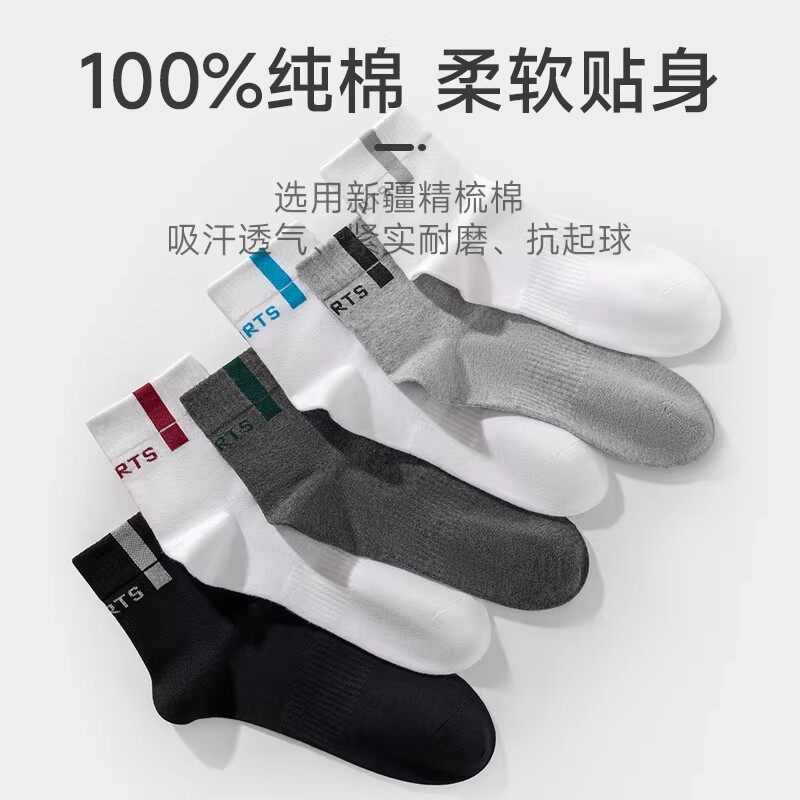 袜子男防脚气抗菌防臭纯棉秋冬季吸汗透气运动纯色男士四季中筒袜