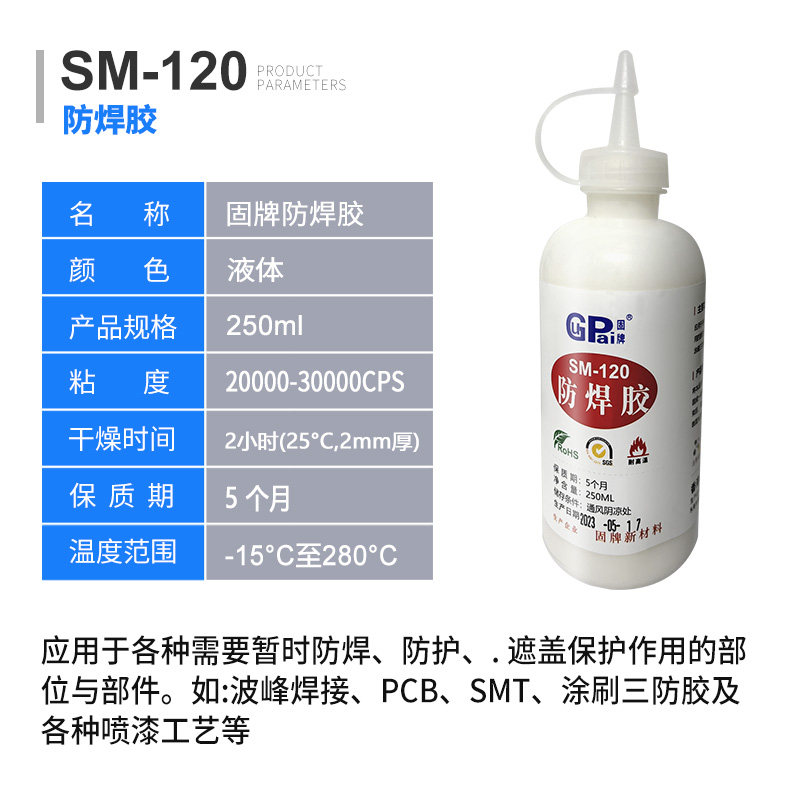 固牌高温防焊胶耐SM-120可撕无残留拒焊胶
