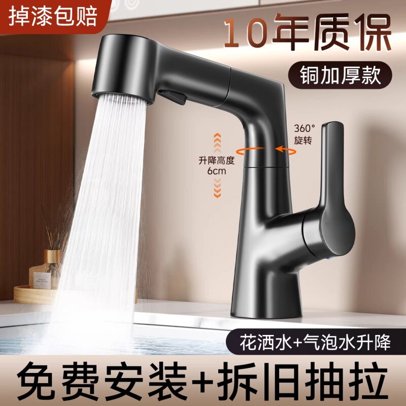 卫生间洗脸盆水龙头家用洗手池面盆浴室柜洗漱台抽拉式冷热