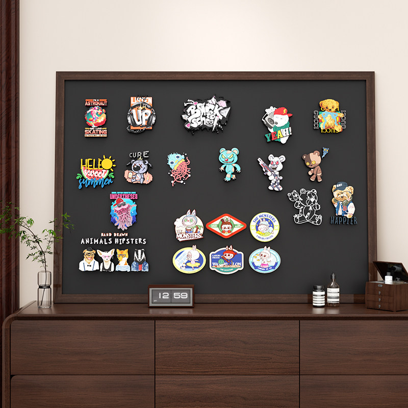 磁吸白板冰箱贴展示板实木框黑板磁吸小黑板挂墙式家用教学珐琅板磁性可擦化妆品收纳板照片墙装饰写字板定制