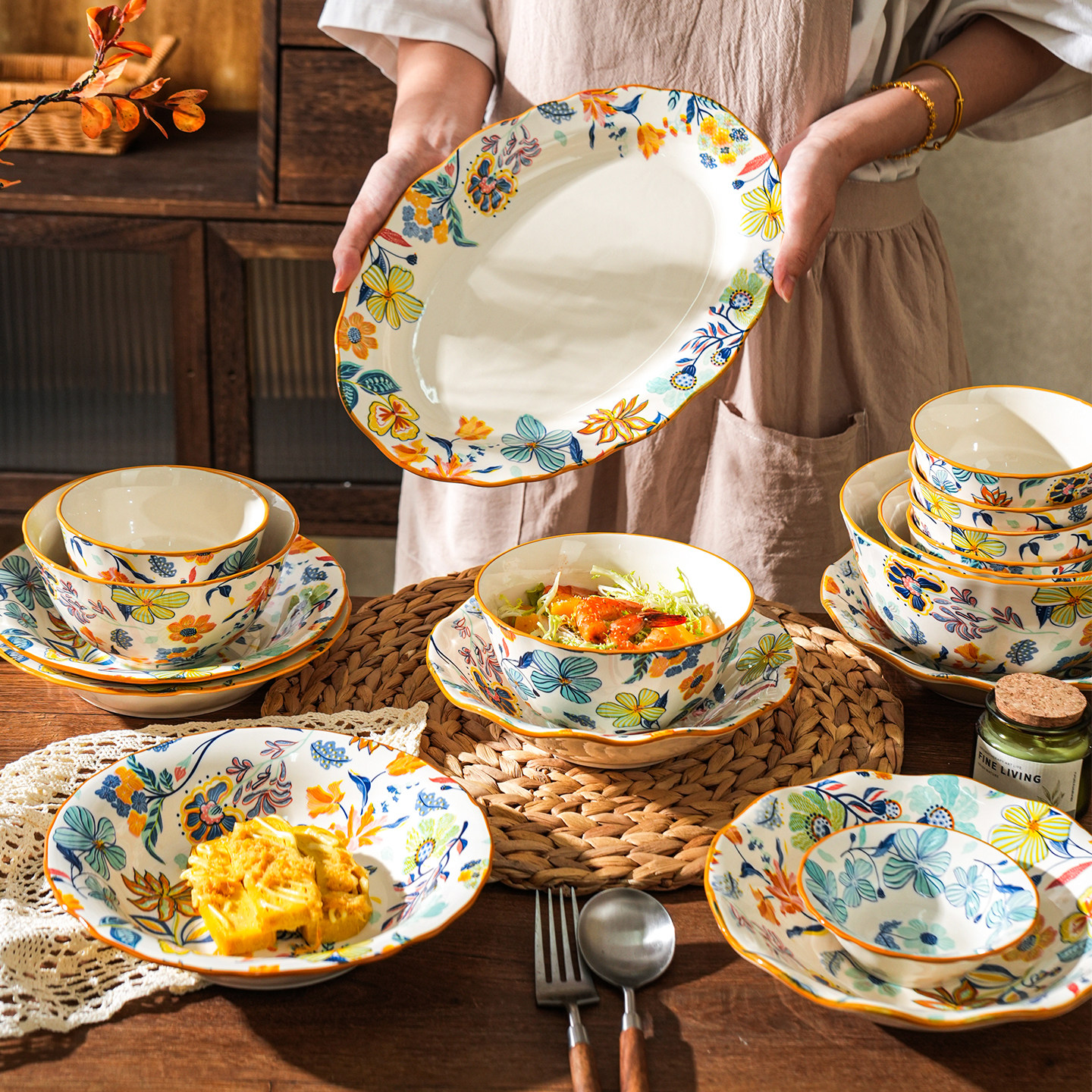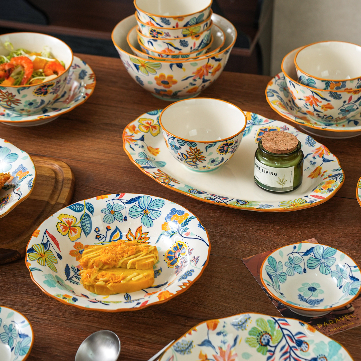 舍里复古陶瓷餐具套装家用轻奢碗碟组合釉下彩碗盘筷高档乔迁礼物