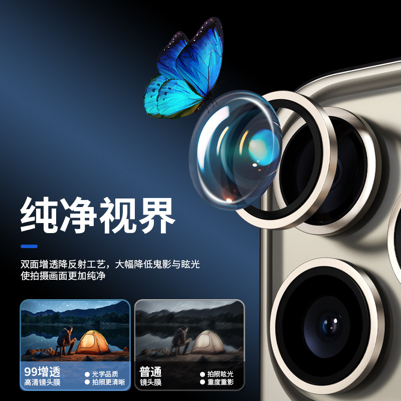 蓝猩适用苹果15promax镜头膜iPhone15手机后置钢化膜99增透金属15pro摄像头plus玻璃IP新款相机神器保护贴膜