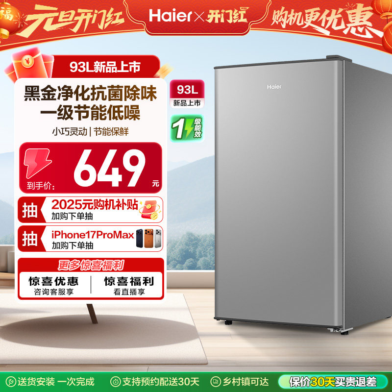 换新补贴海尔93L单门小型冰箱一级能效出租房办公家用