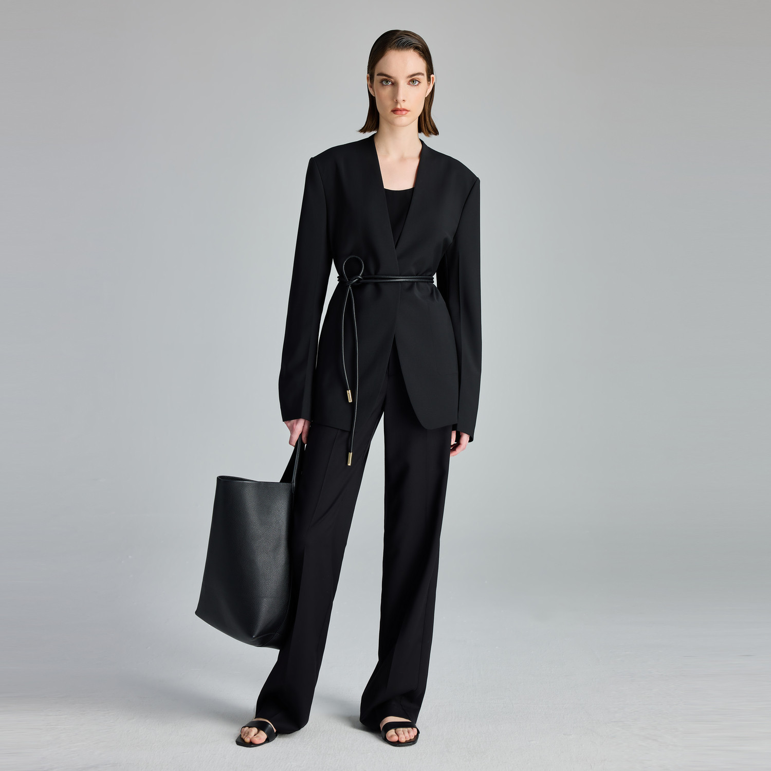 MISSCOCOON可可尼C3系列休闲裤女2025年秋款精纺羊毛黑色阔腿裤