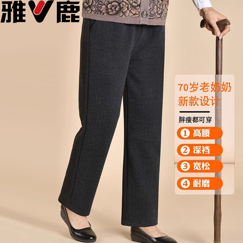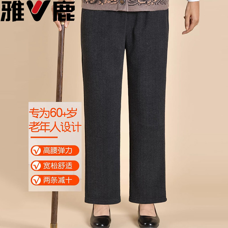 雅鹿妈妈裤子秋冬款中老年女裤大码奶奶保暖裤毛呢加绒新款休闲