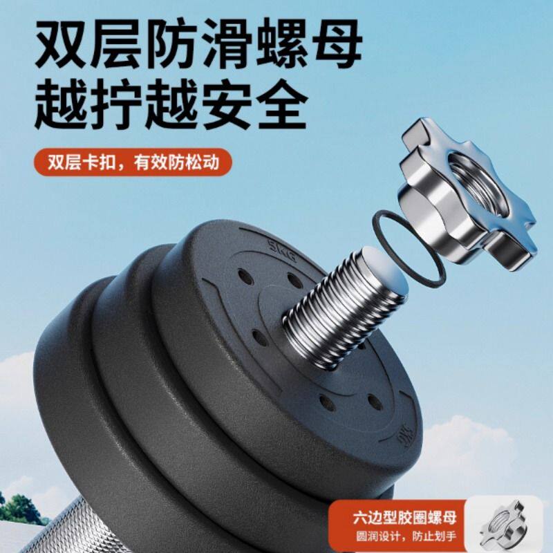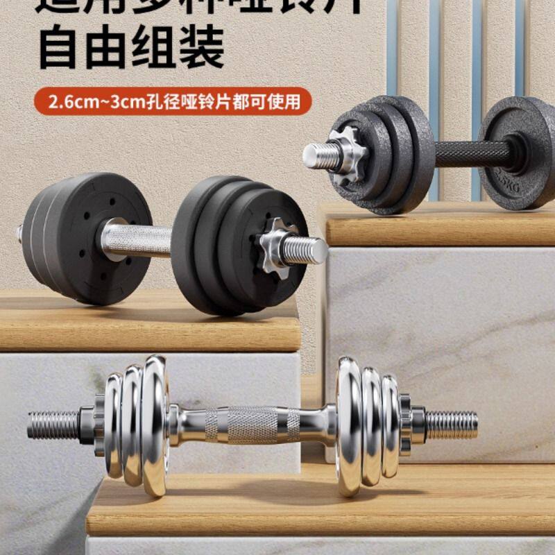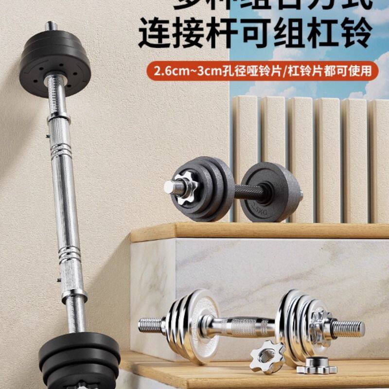 纯铁铸实心哑铃棍哑铃螺纹棒电镀彩胶枣核丝光杆杠铃杆连接器配件