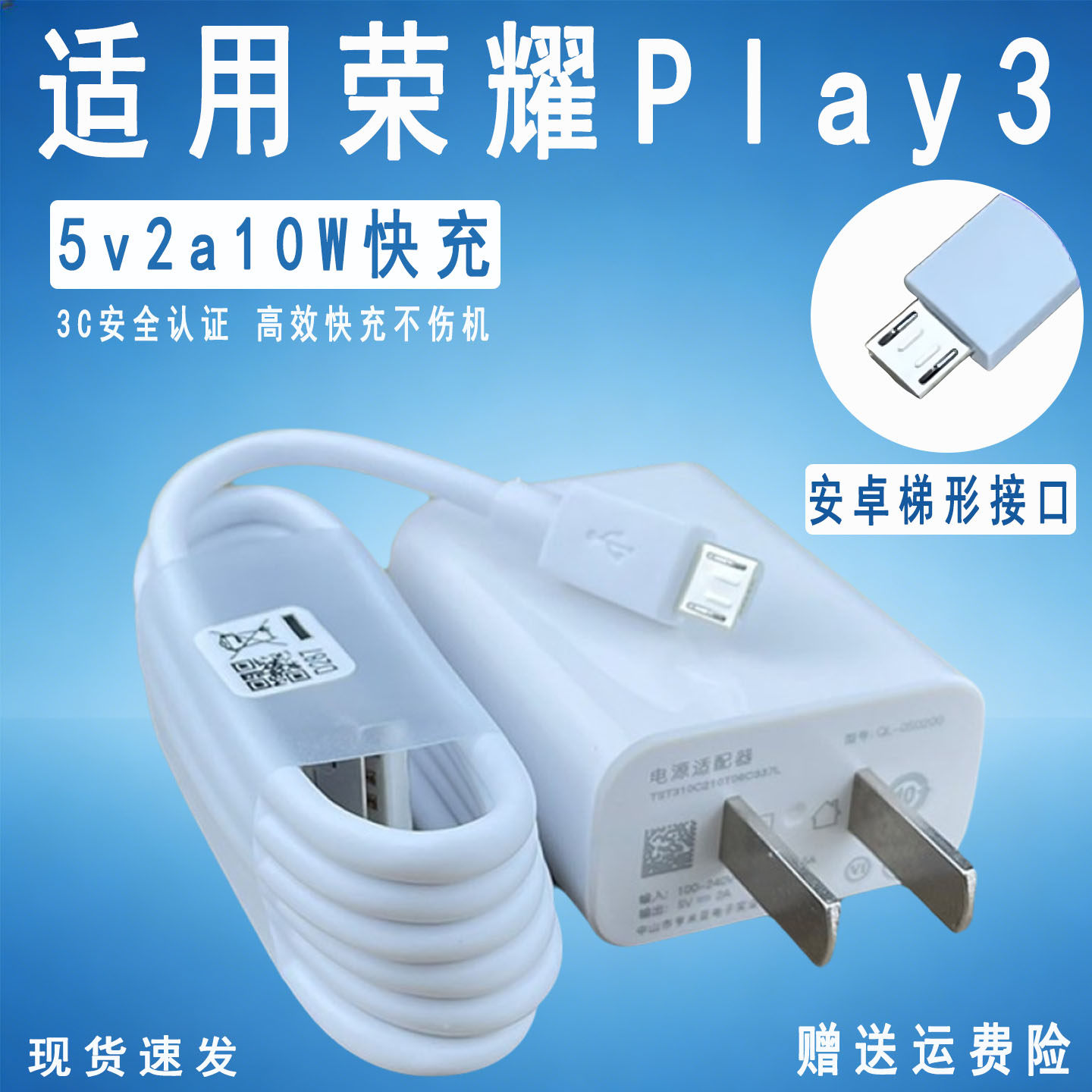 适用华为荣耀play3充电器10w快充5V2A数据线荣耀play3手机会岛正品闪充插头加长2米线套装