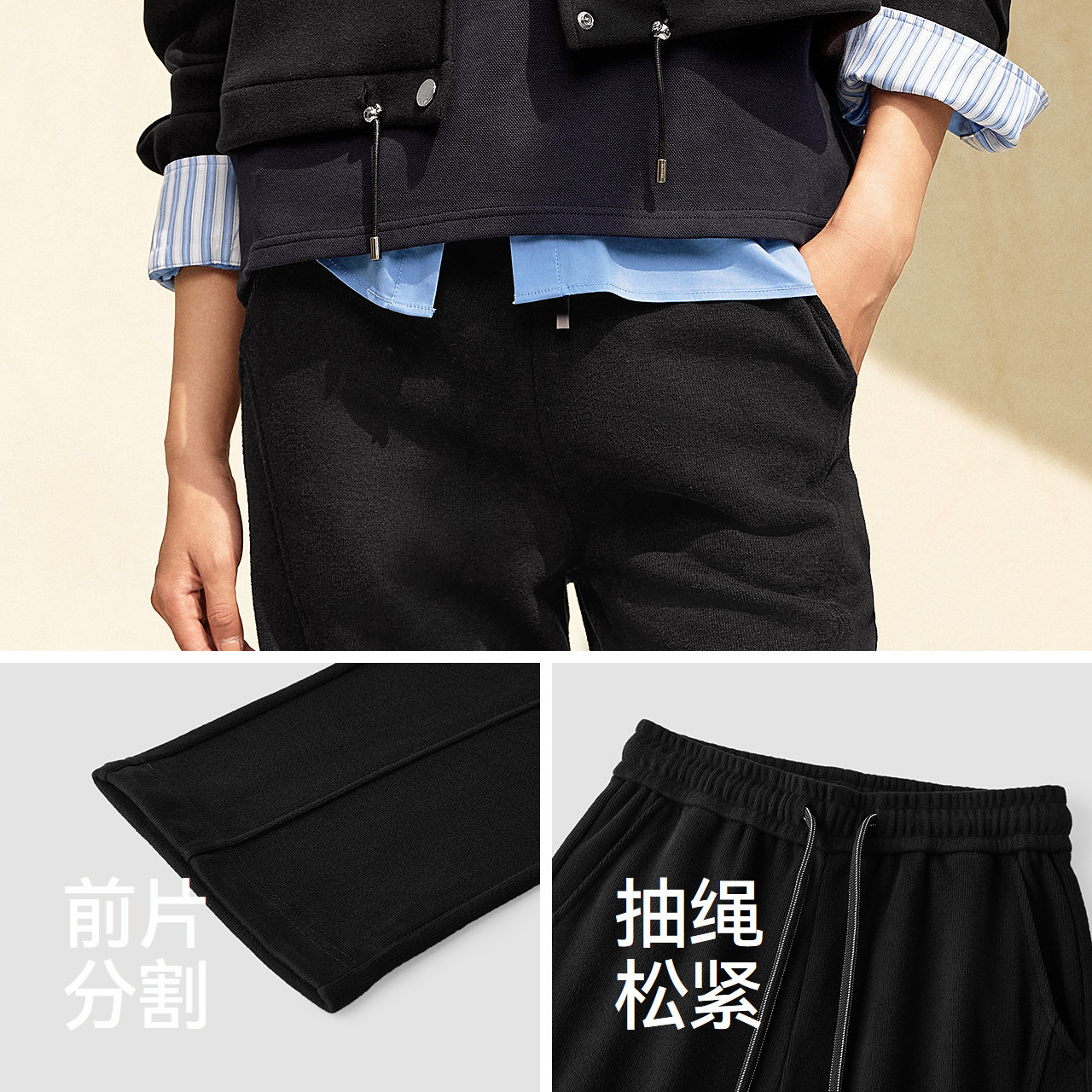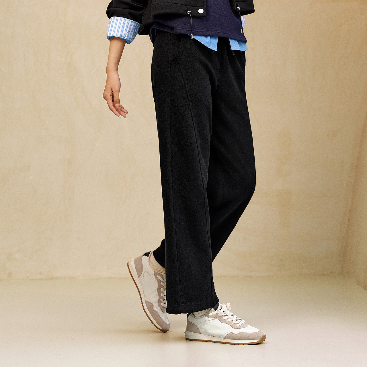 森马休闲裤女冬季抓绒分割松紧腰宽松长裤显腿长简约慵懒风阔腿裤