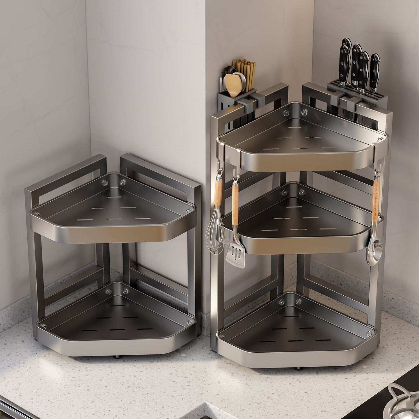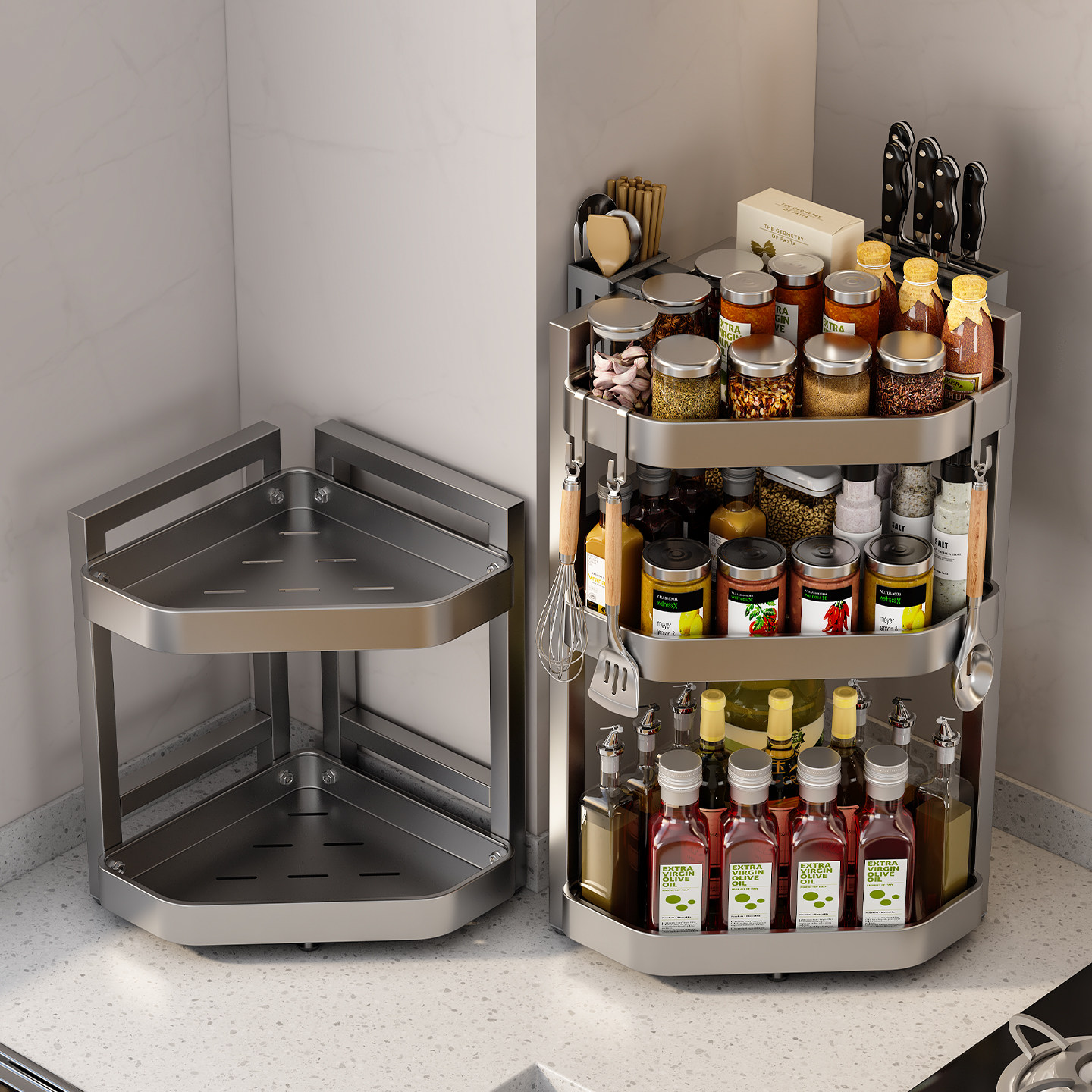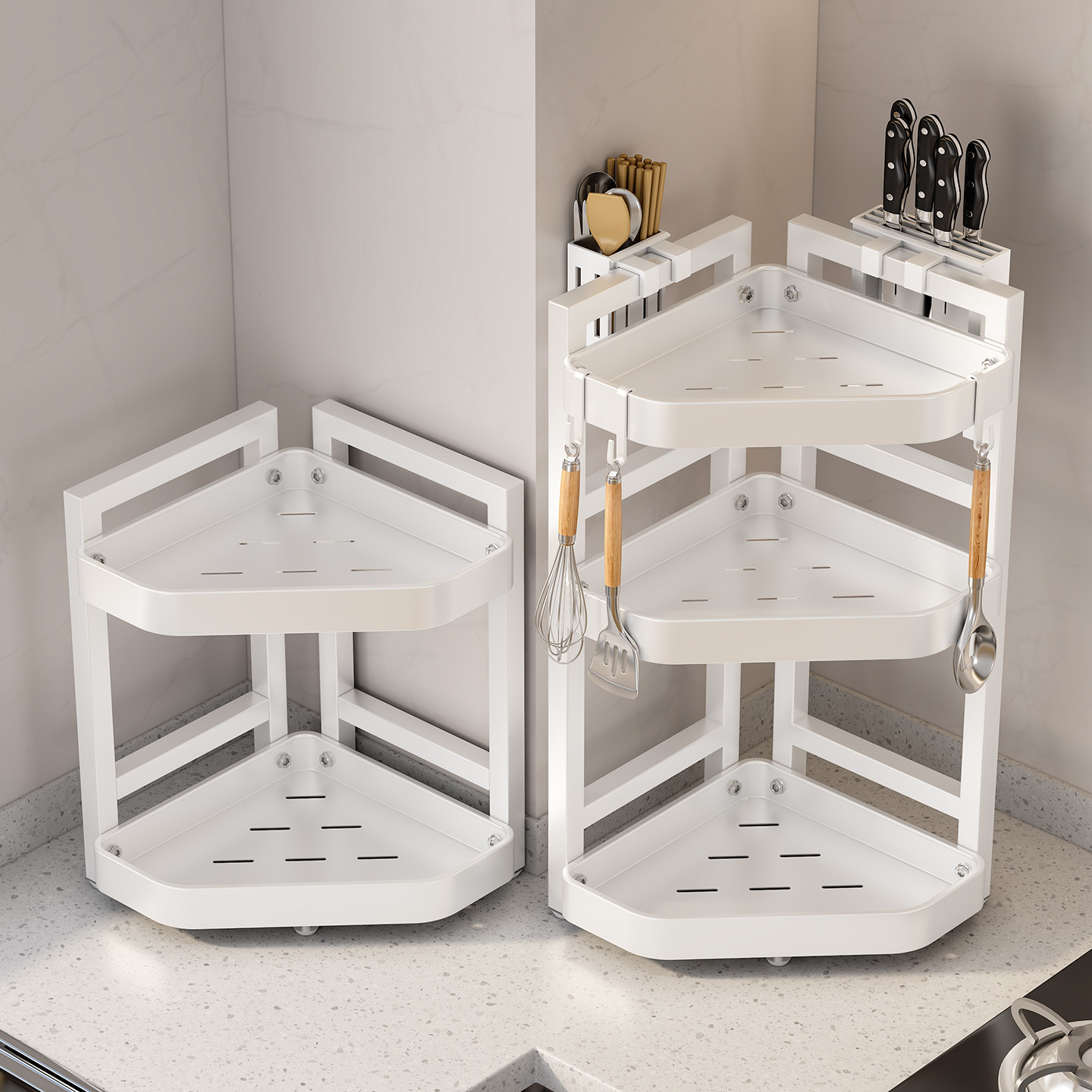 厨房收纳置物架多功能台面转角多层三角调料瓶免打孔拐角架子分层