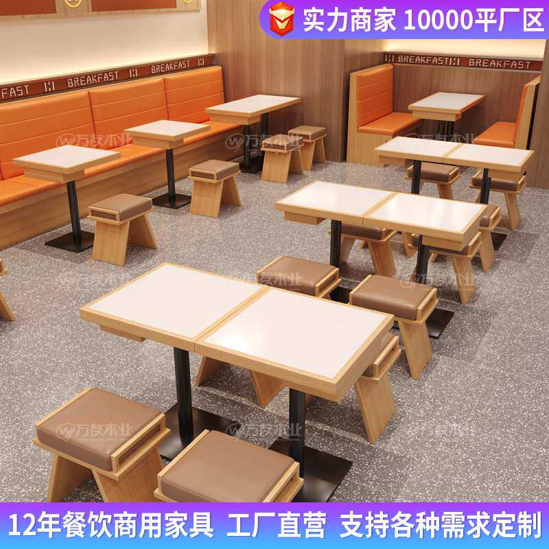面馆桌椅组合米村拌饭桌子带抽屉烧烤店餐桌商用餐饮家具卡座沙发