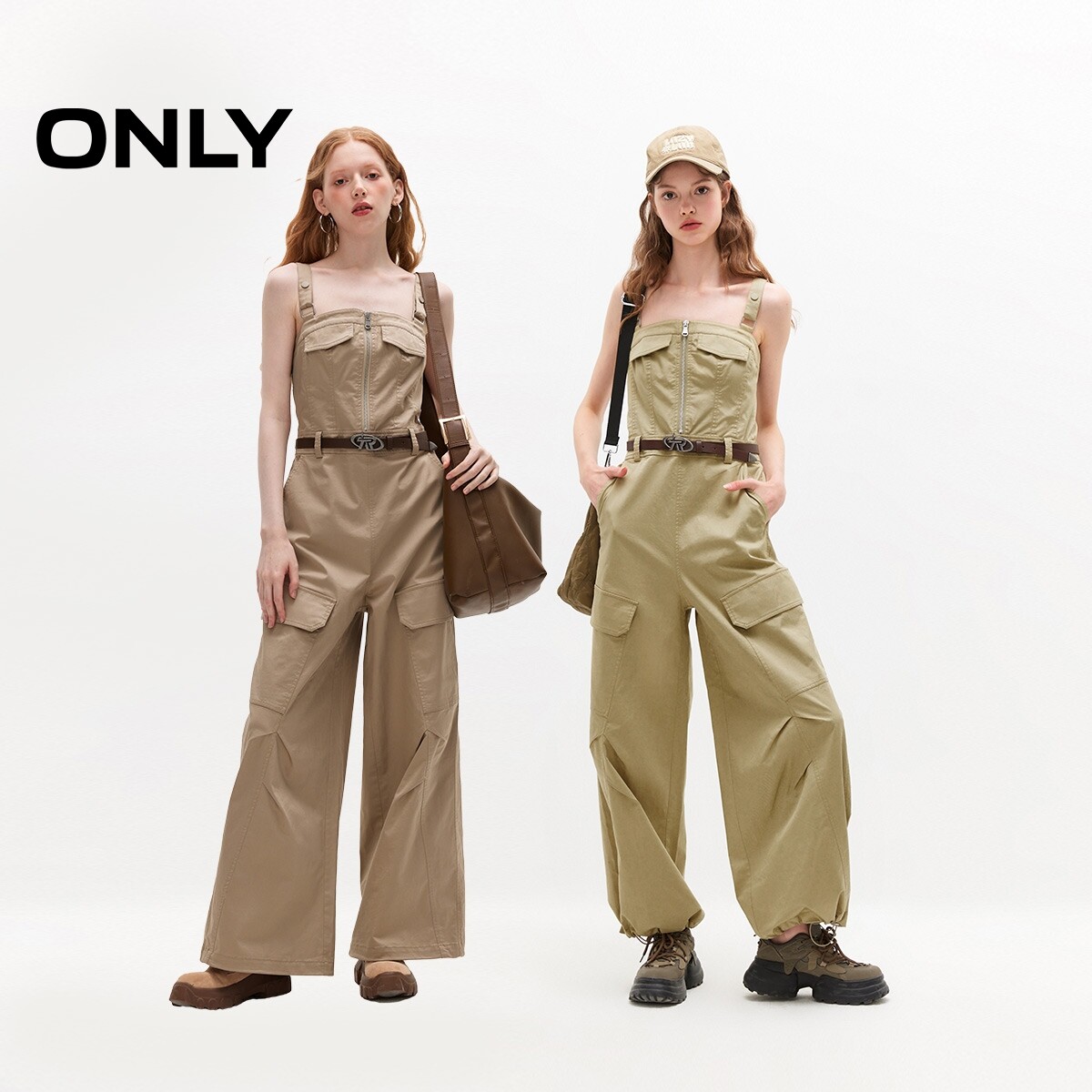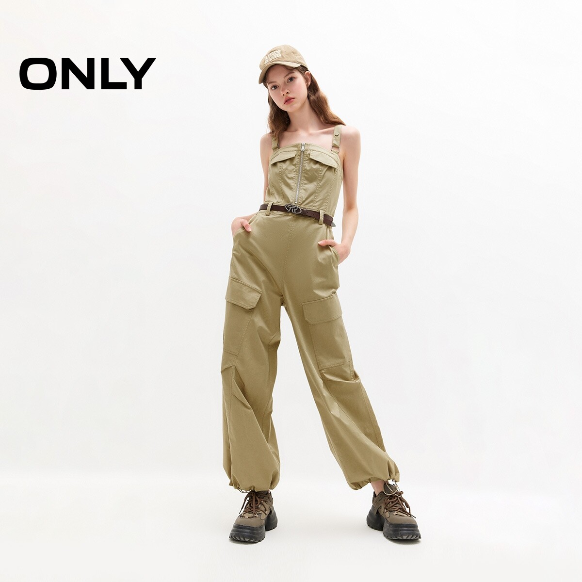 【ONLY奥莱】春季新款工装风高腰连体裤直筒裤休闲裤女