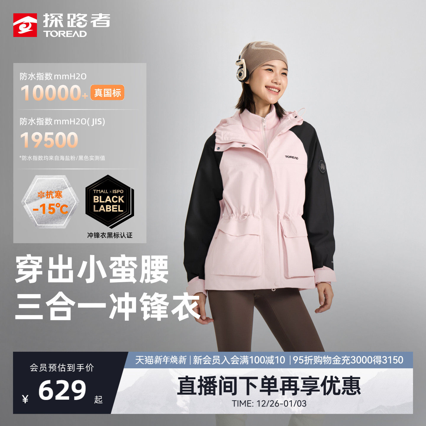 探路者冲锋衣女士2025新款冬季户外徒步登山防水防风三合一外套男