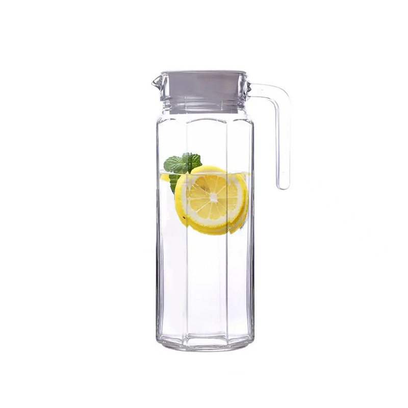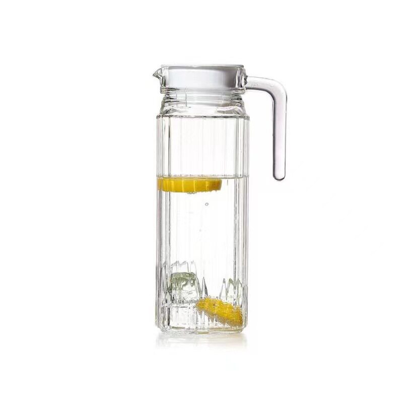 批发1.3升玻璃鸭嘴壶竖纹冷水壶八角冷水壶大容量果汁壶扎壶