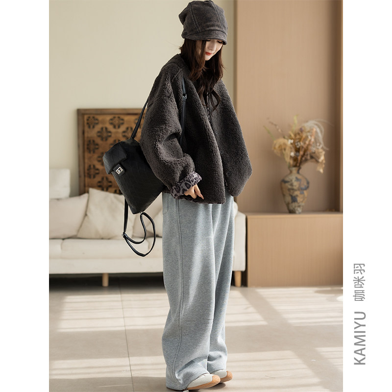咖咪羽外套女秋冬新款豹纹内里欧货皮毛一体时尚洋气休闲女装外套