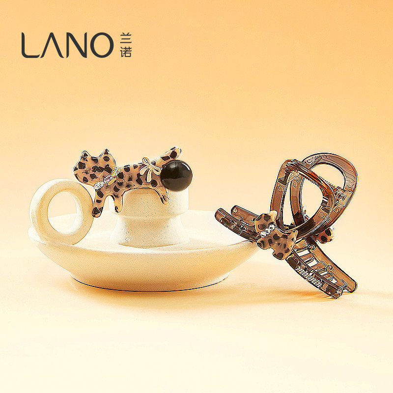 兰诺豹纹猫咪醋酸发夹女2025新款高端侧边夹前额刘海夹儿童鸭嘴夹