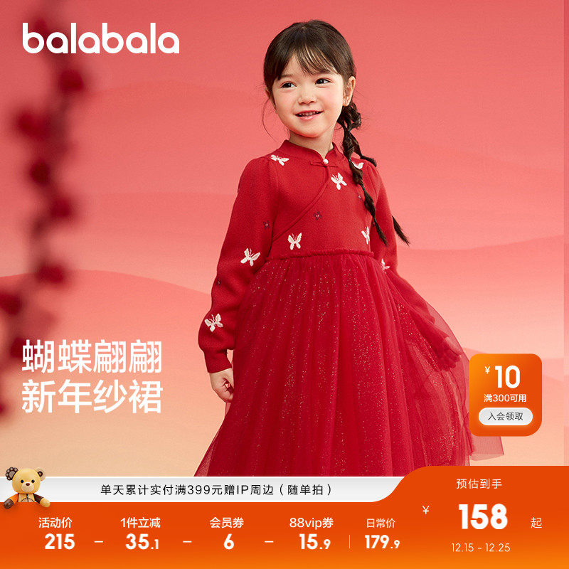 巴拉巴拉童装女童连衣裙儿童裙子针织网纱2025春装新款公主裙精致