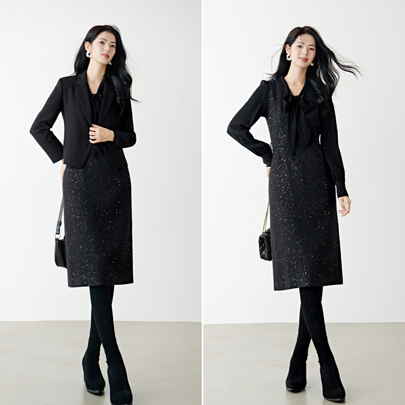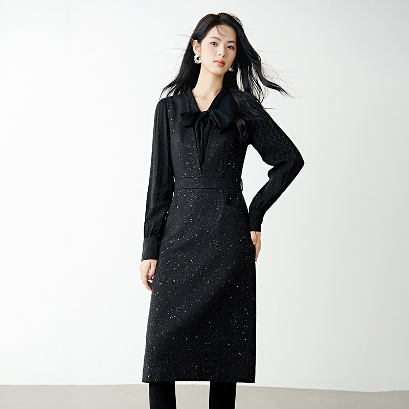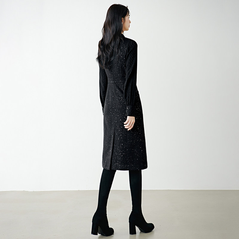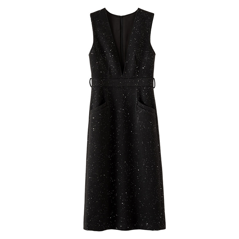 晚白2025年秋冬新款时尚优雅亮闪闪毛呢裙挺括修身显瘦无袖连衣裙