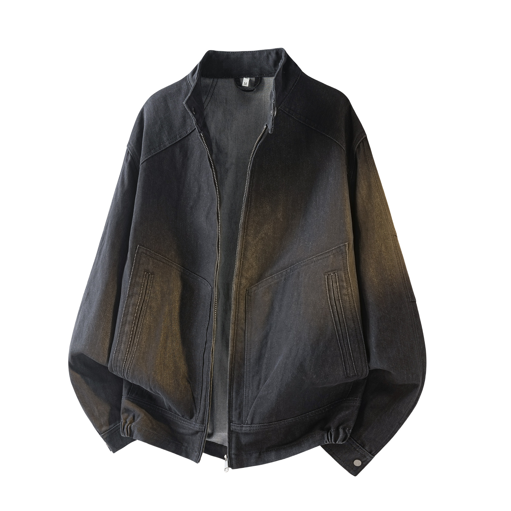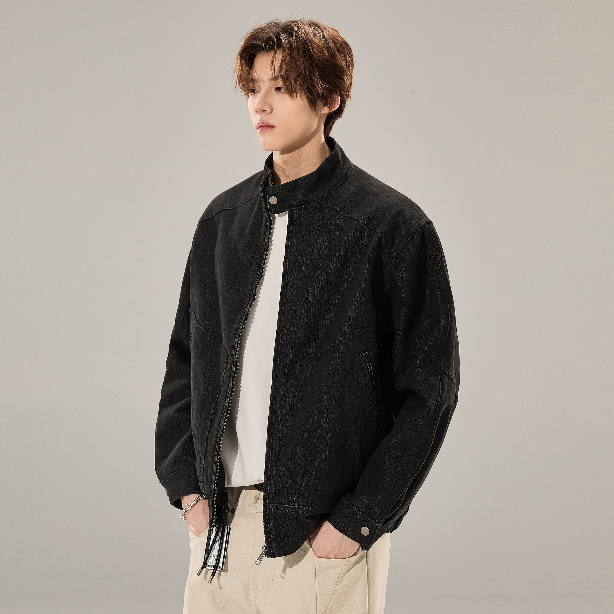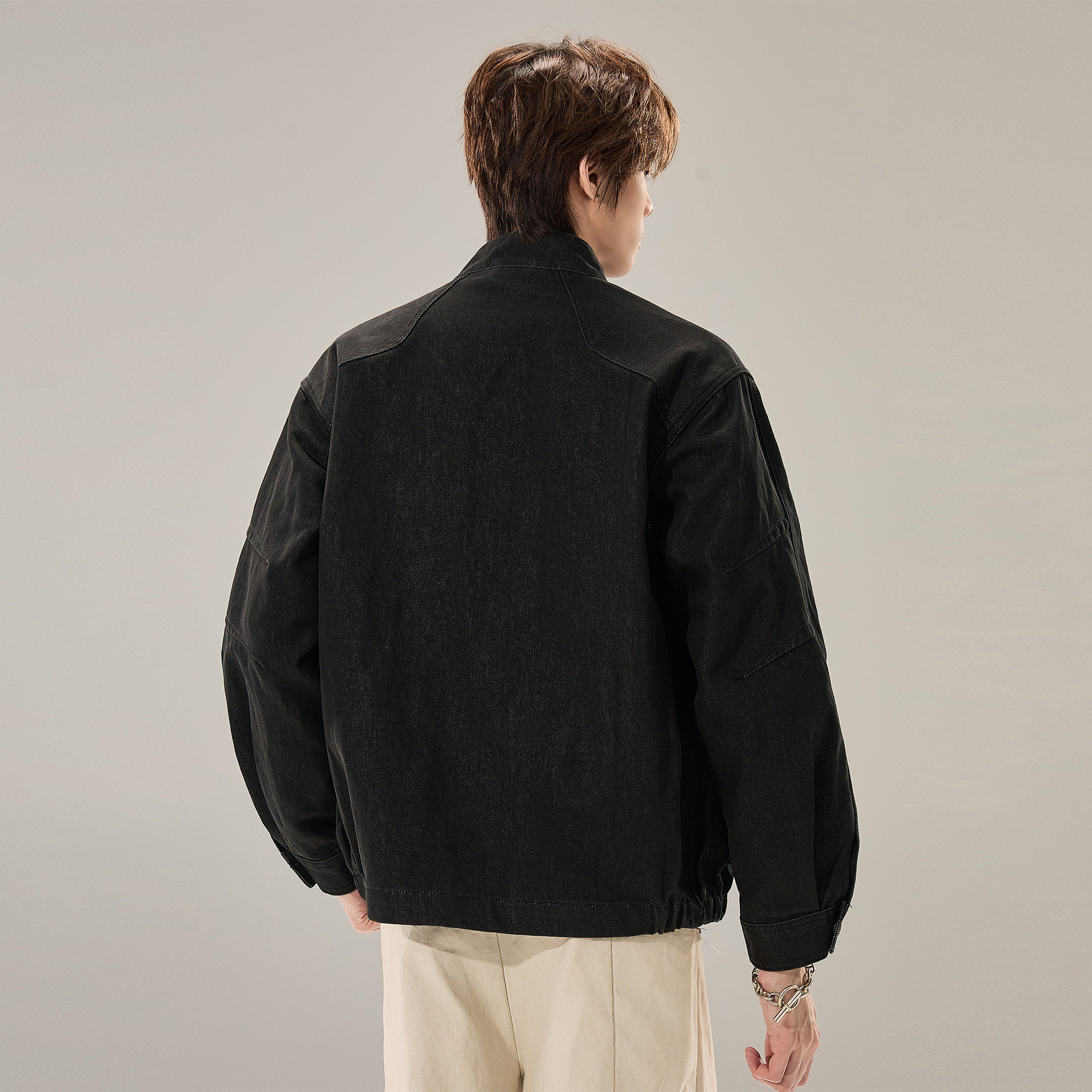 ALLIN 黑色哈灵顿牛仔外套男春秋季美式水洗立领情侣潮牌短款夹克