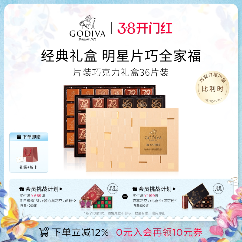 【38抢先购】GODIVA歌帝梵牛奶黑巧克力礼盒36片装高端零食