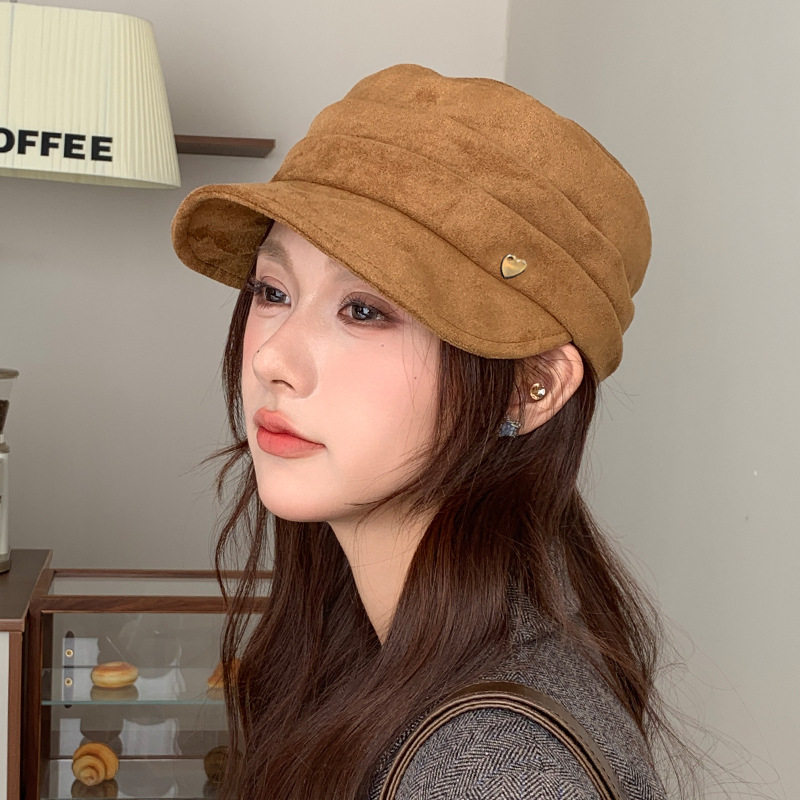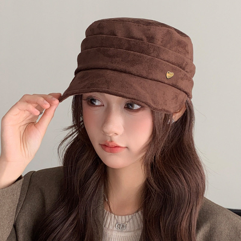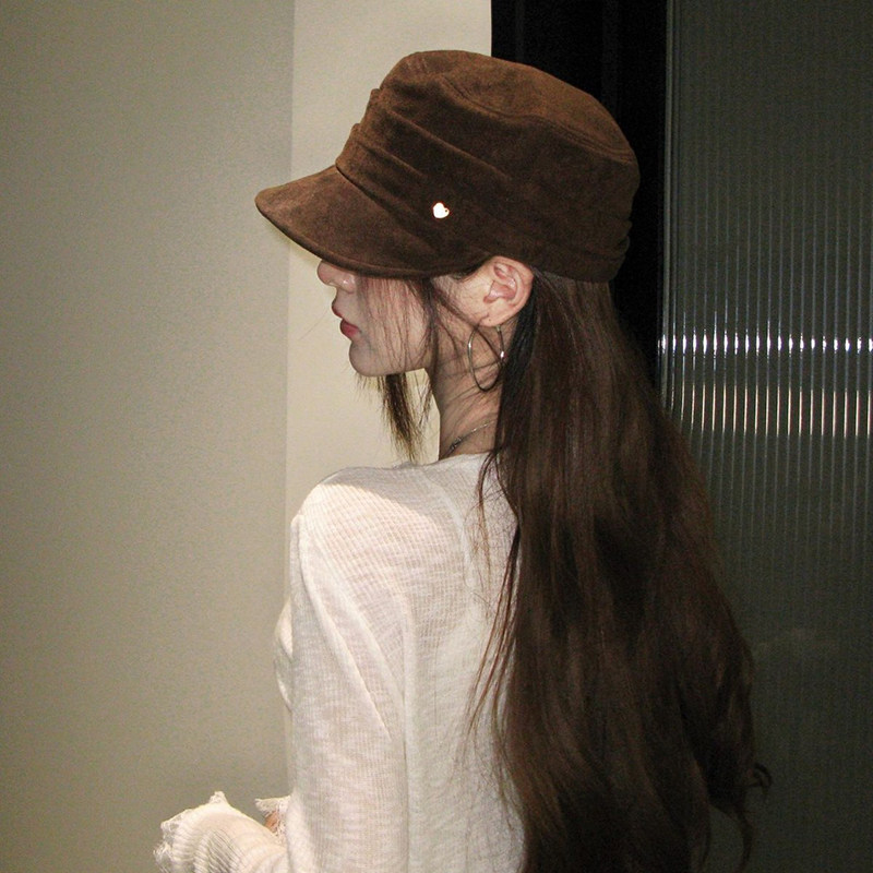 古早浪漫~纯色麂皮褶皱马术平顶帽2025新款复古做旧休闲报童帽秋