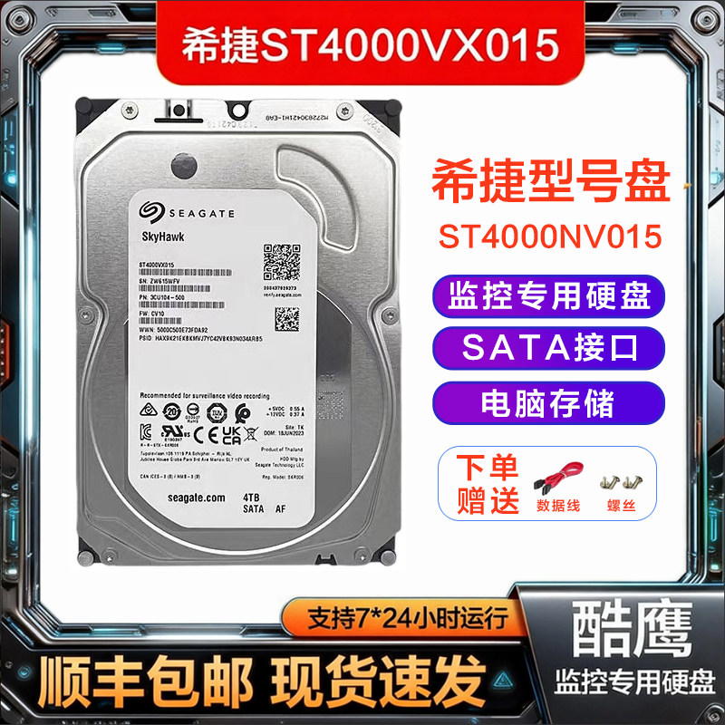 希捷4TB机械硬盘ST4000VX015型号服务器电脑监控录像存储256M缓存