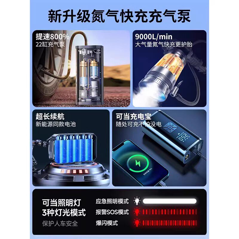 车载充气泵便携式汽车用电动打气筒氮气轮胎带测胎压小型自动加气