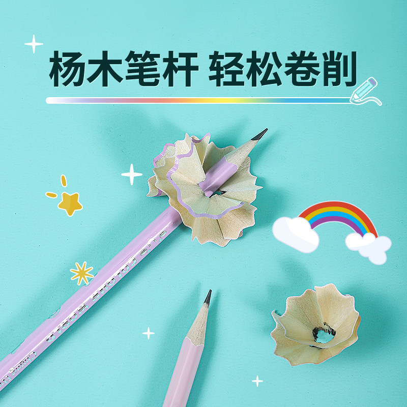 得力渐变书写铅笔小学生一二年级六角杆考试蓝色粉色2BHB无毒无铅