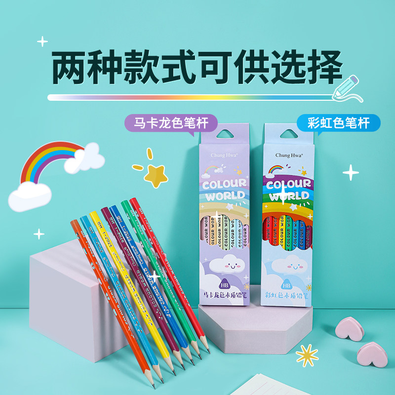 中华彩虹马卡龙儿童初学者学龄前小学书写铅笔三角正姿铅笔易握手