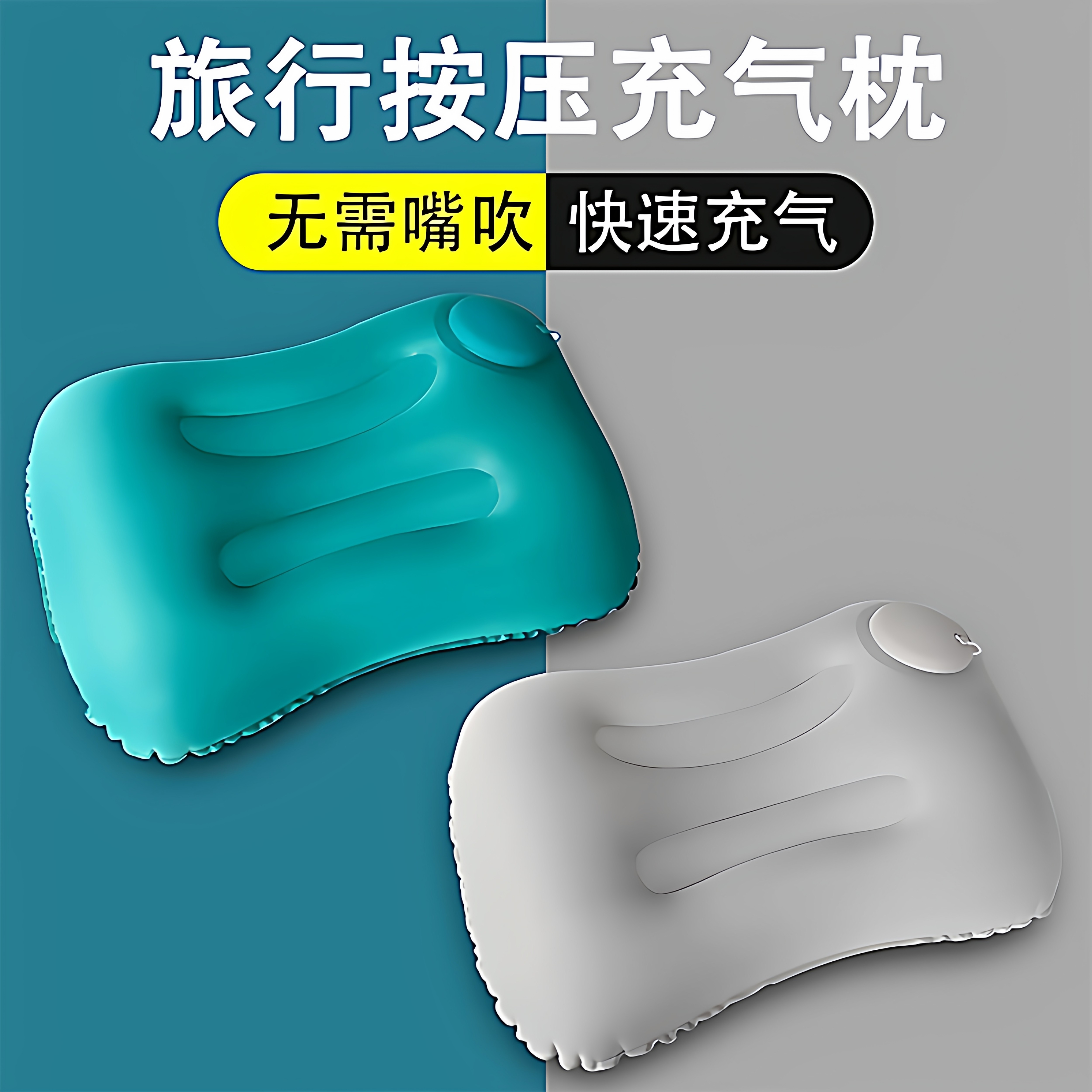 按压充气枕头飞机高铁长途坐车护腰靠垫户外旅行露营折叠便携枕头