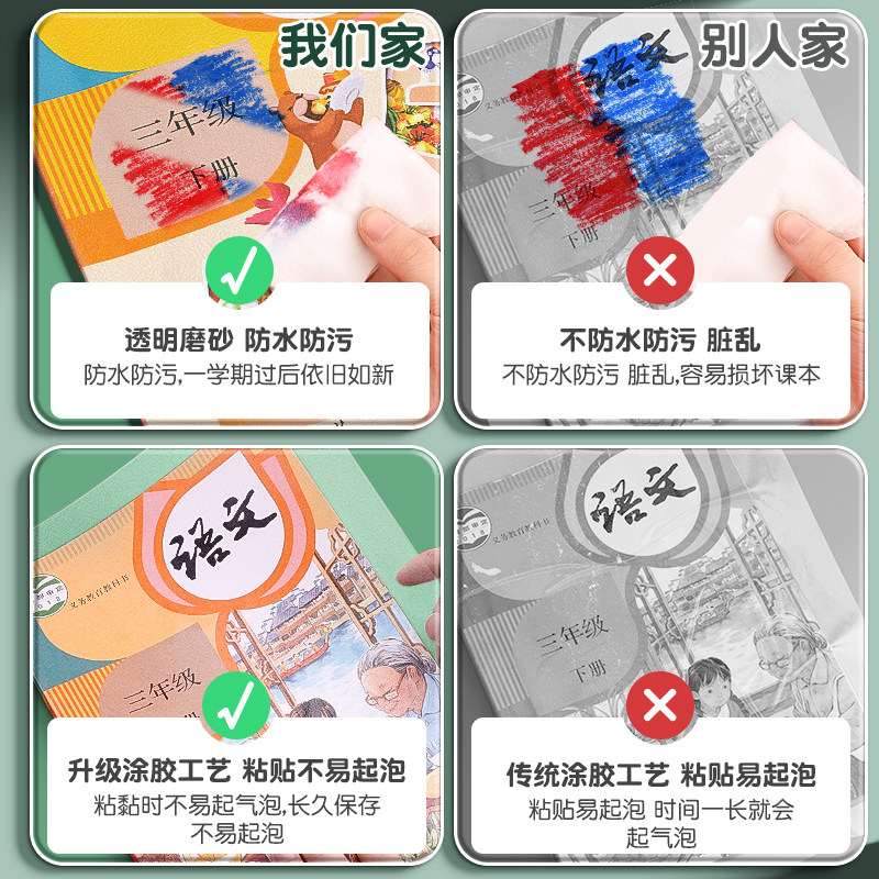 包书皮自粘透明磨砂书皮纸小学生专用一年级二三年上册中号16k课本2025新款书本封皮保护套书套书膜全套贴纸