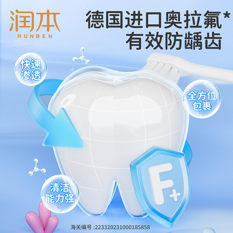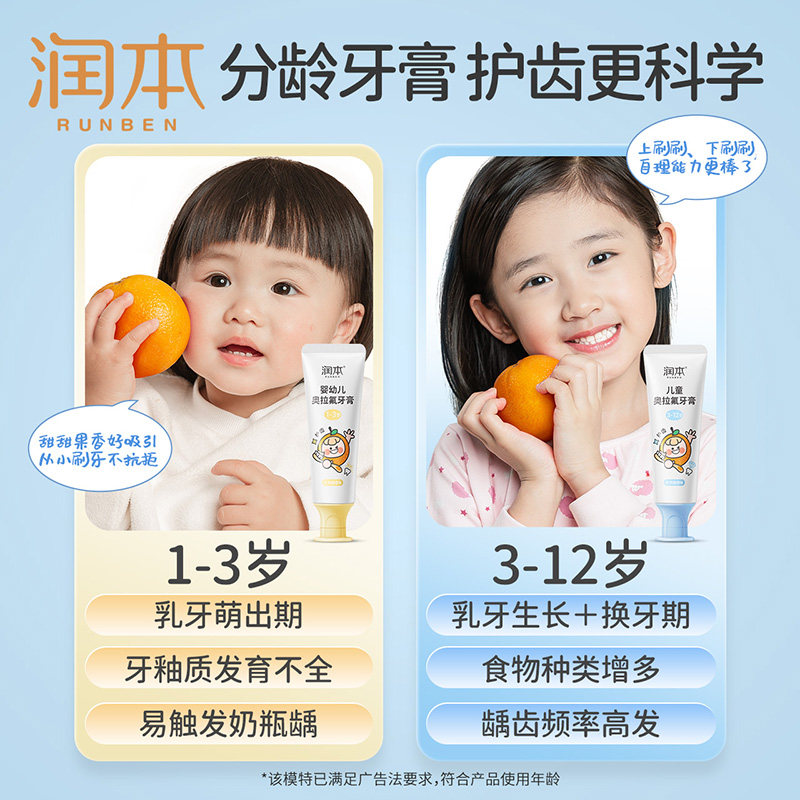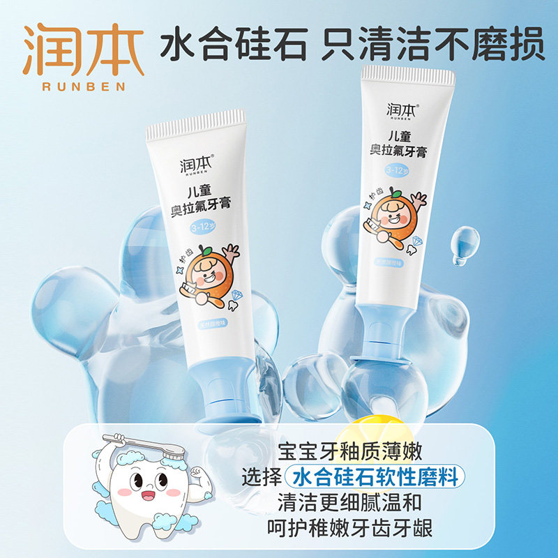 润本儿童牙膏3到6岁到12岁含氟换牙期奥拉氟防蛀牙宝宝专用不吞咽