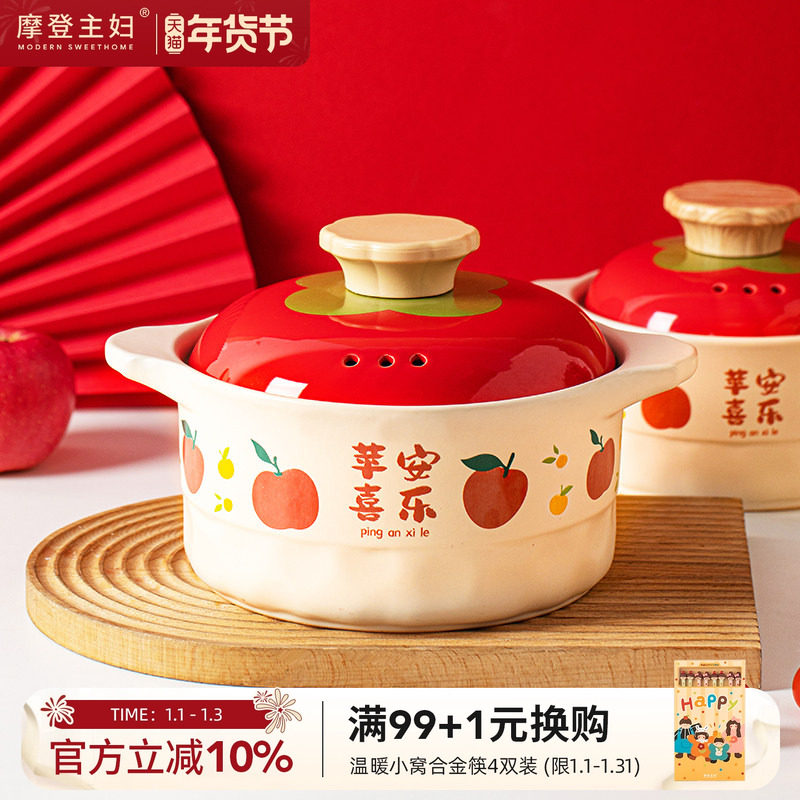 摩登主妇砂锅煲家用耐高温干烧不裂燃气灶专用沙锅陶瓷煲汤炖汤锅