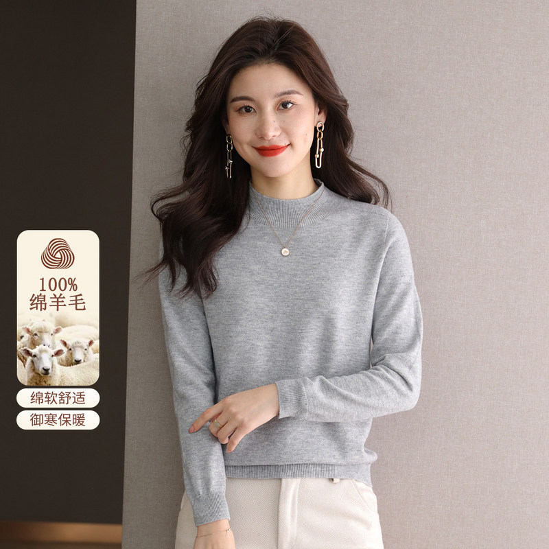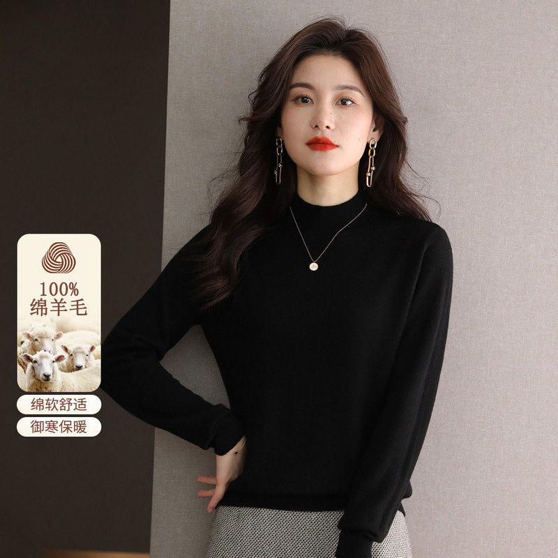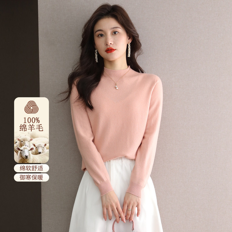 一线成衣无缝女半高领套头打底衫秋冬内搭毛衣修身长袖羊毛针织衫