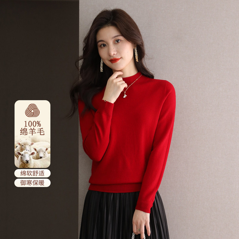 本命新年红!扬子纱羊毛针织内搭打底衫女冬修身高领毛衣2025新款