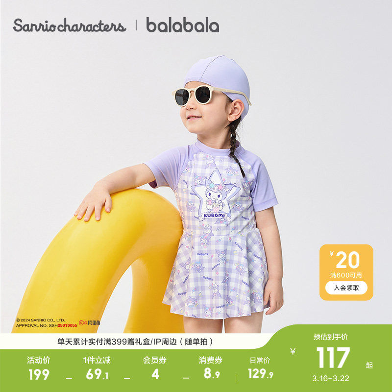 【库洛米IP】巴拉巴拉女童泳衣儿童泳装小童防晒泡温泉潮