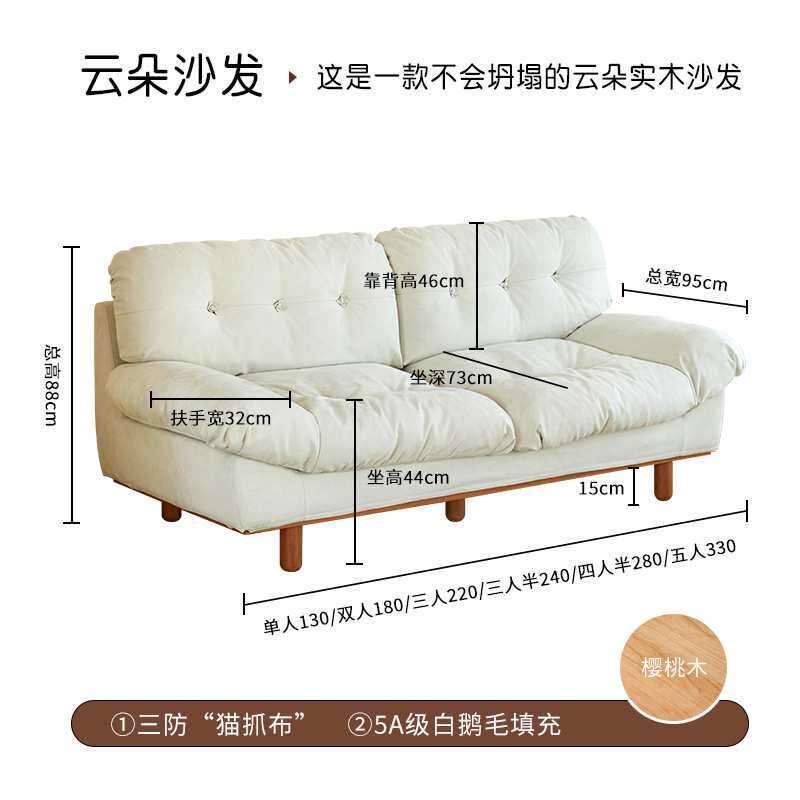 北欧日式羽绒科技布云朵沙发实木baxter客厅小户型milano布艺沙发