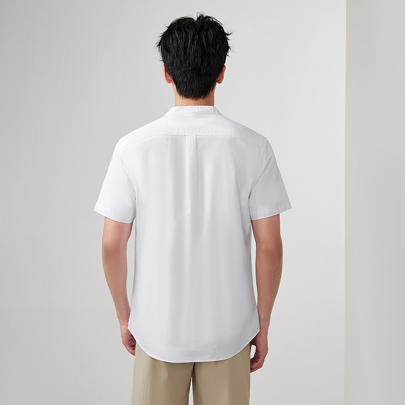 HLA/海澜之家山不在高纯棉牛津纺短袖白色衬衫春夏休闲透气上衣男