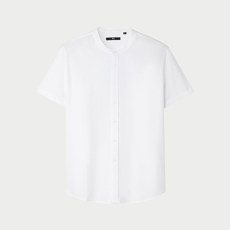 HLA/海澜之家雅致短袖休闲衬衫2026春夏新款绅雅立领纯棉衬衣男