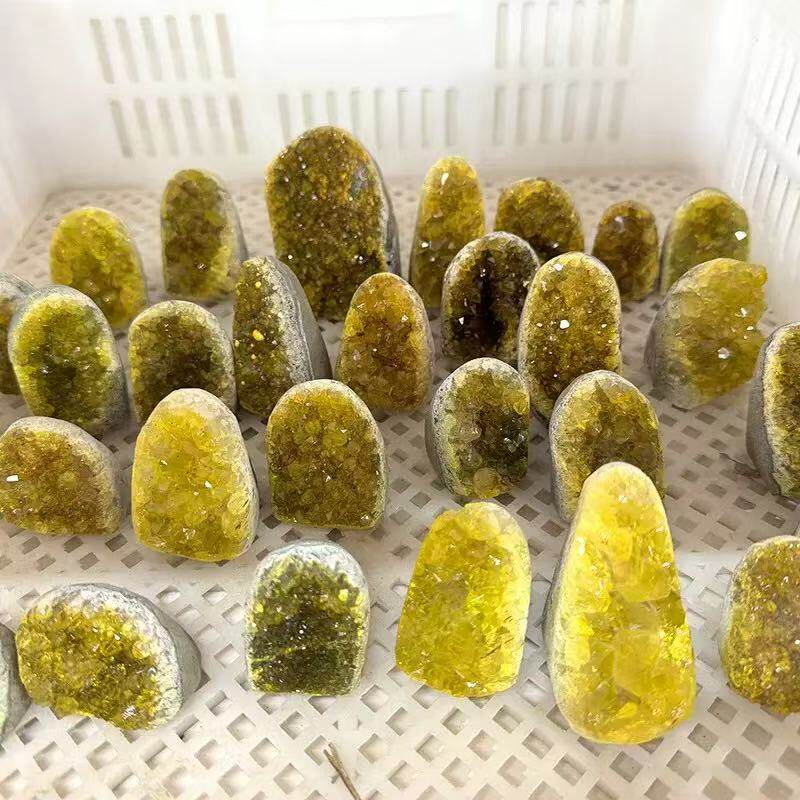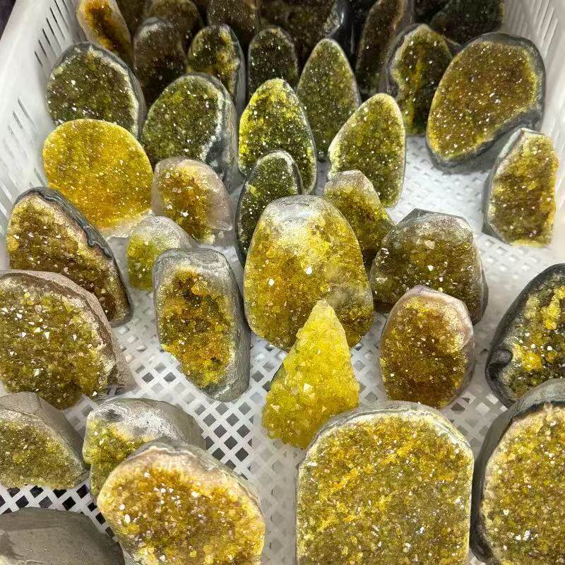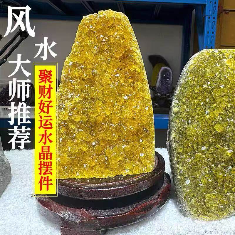 乌拉圭天然水晶原矿黄水晶摆件消磁净化扩香石招财玄关桌面晶洞