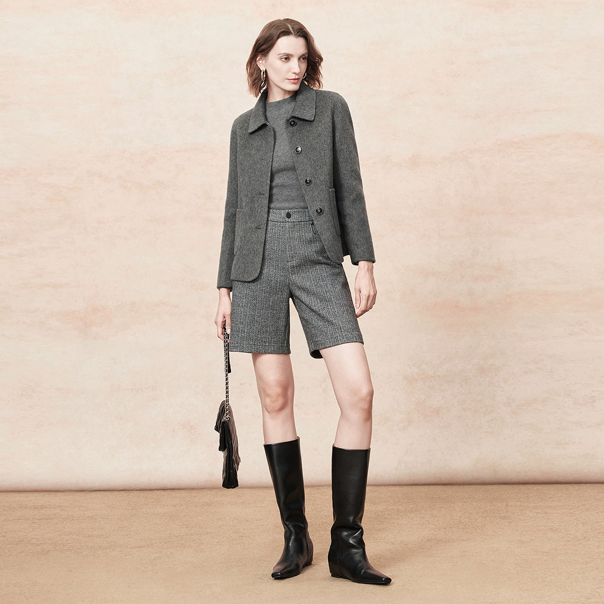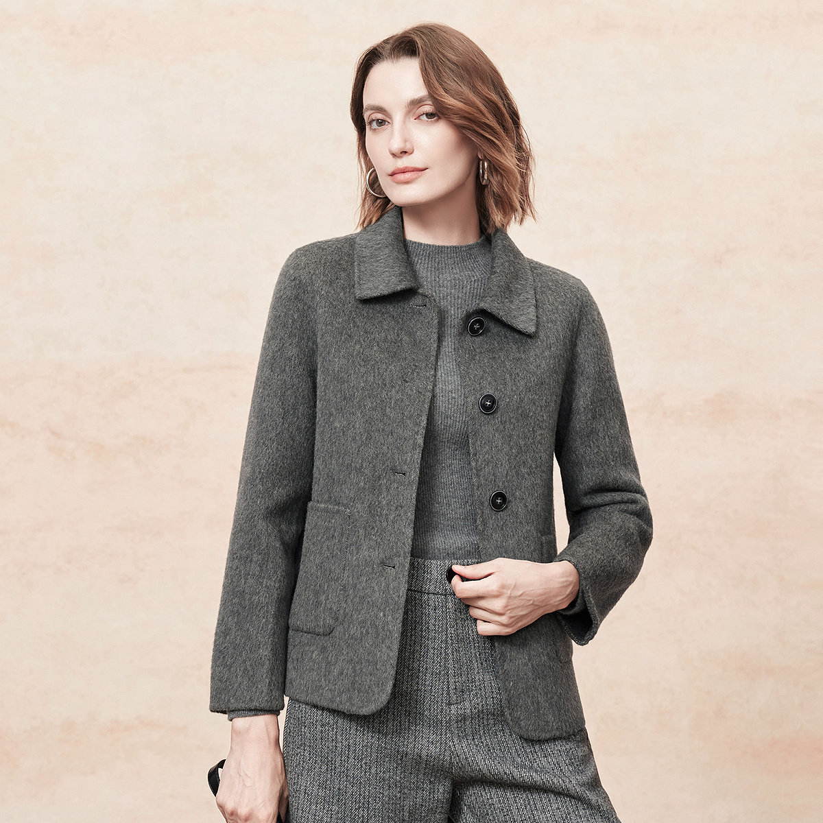 FINITY菲妮迪羊毛短外套25年冬季新款翻领双面呢毛呢大衣外套女装