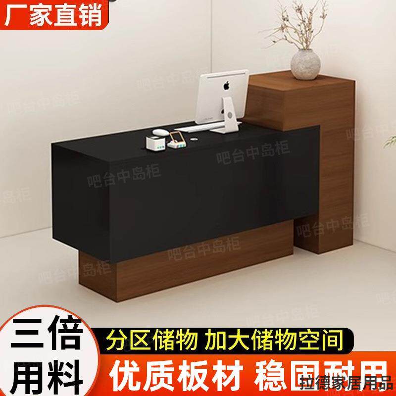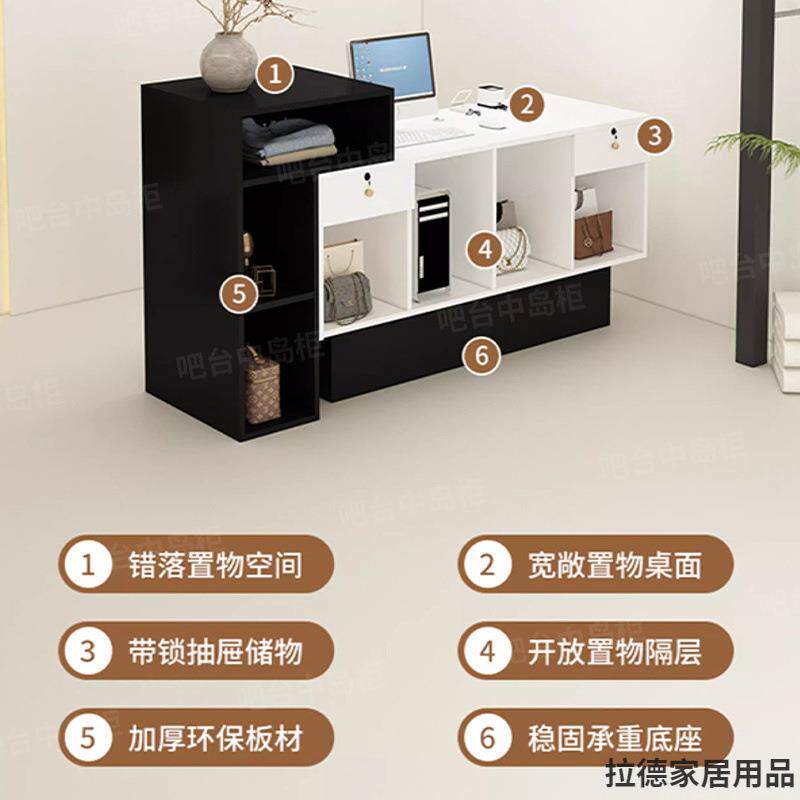 轻奢风格仿大理石收银台E1级环保刻面人造板带穿线孔服装店长桌