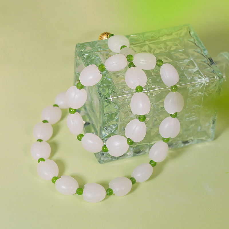 和合玉器和田玉羊脂白玉碧玉茉莉花项链高端系列高定玉石颈链女