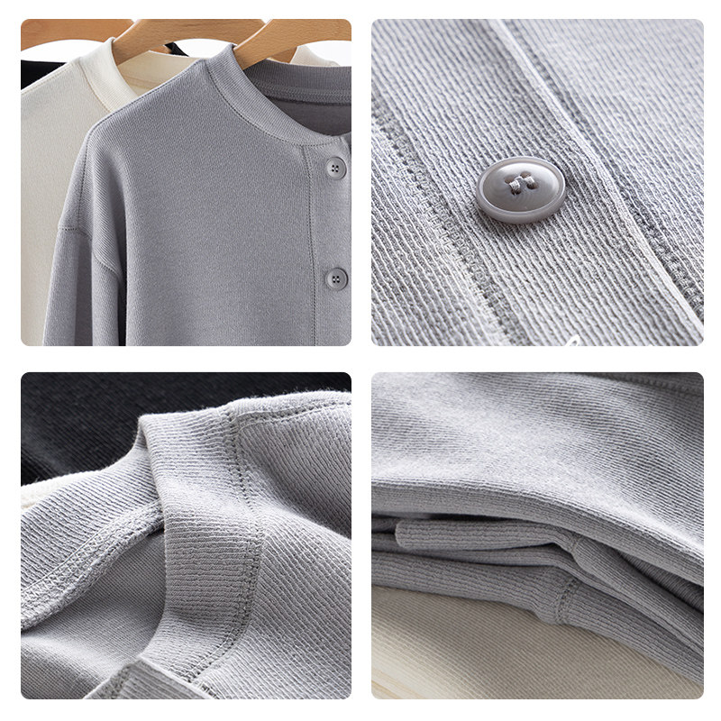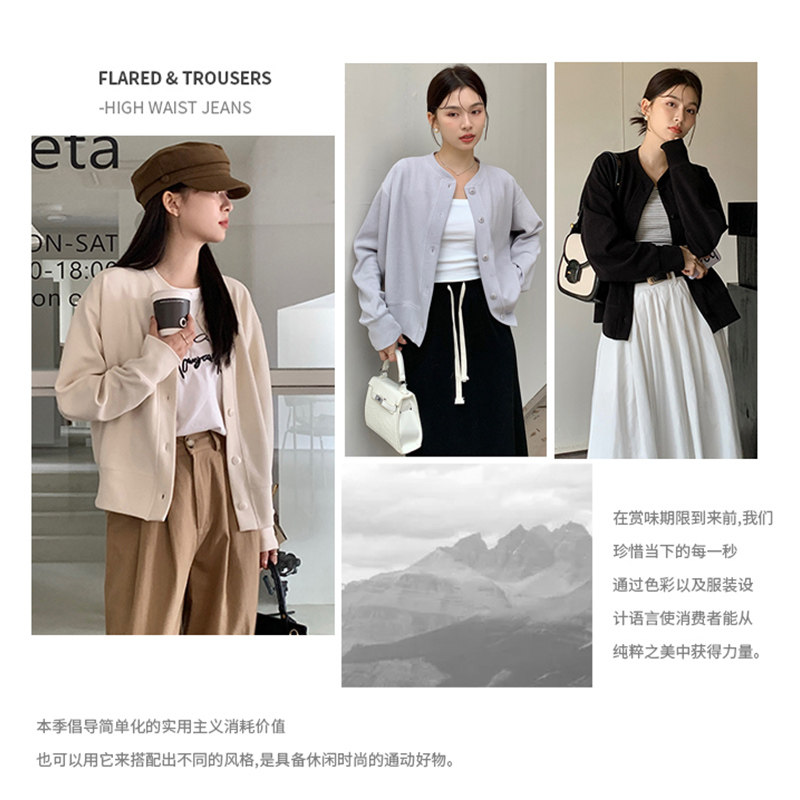 NOME春季外套女纯色纽扣开衫圆领长袖卫衣甜美休闲外搭上衣女
