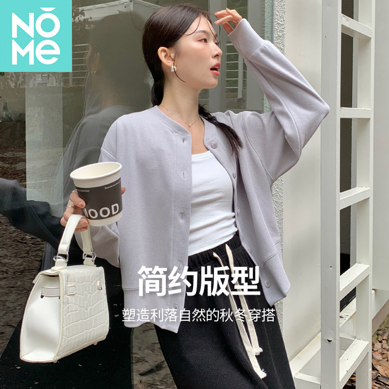 NOME秋冬季外套女纯色纽扣开衫圆领长袖